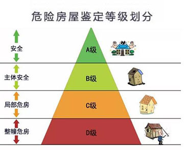 根據(jù)房屋的危險(xiǎn)性及受損程度,鑒定等級(jí)劃分為: